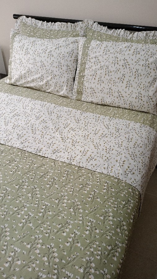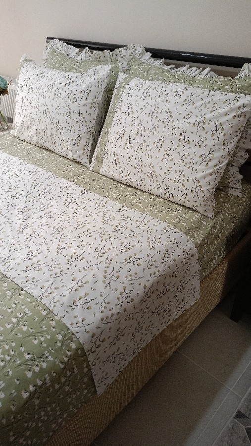 nevresim takımı yüzde yüz pamuk kullanılarak dikilmiştir. Çekme solma yapmaz... nevresim 200-220 fırfırlı yastık 50_70 uyku yastığı 50-70 lastikli çarşaf 160-200 yatak için uyumludur. 30 derecede kısa programda yıkama tavsiye edilir..