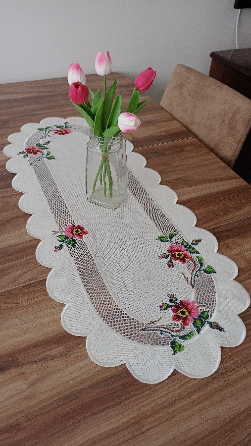 linen keten kumaş kullanılmıştır 37-93 ebatındadır. kaneviçe aplike uygulanmıştır. kaneviçesi el işlemesidir. elde yıkama yapılır