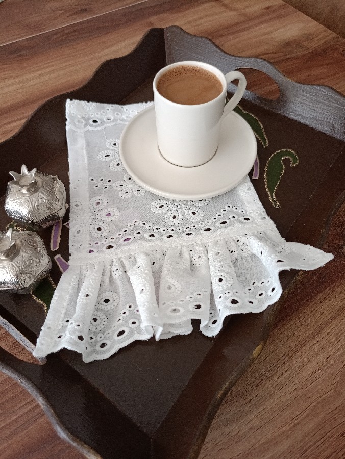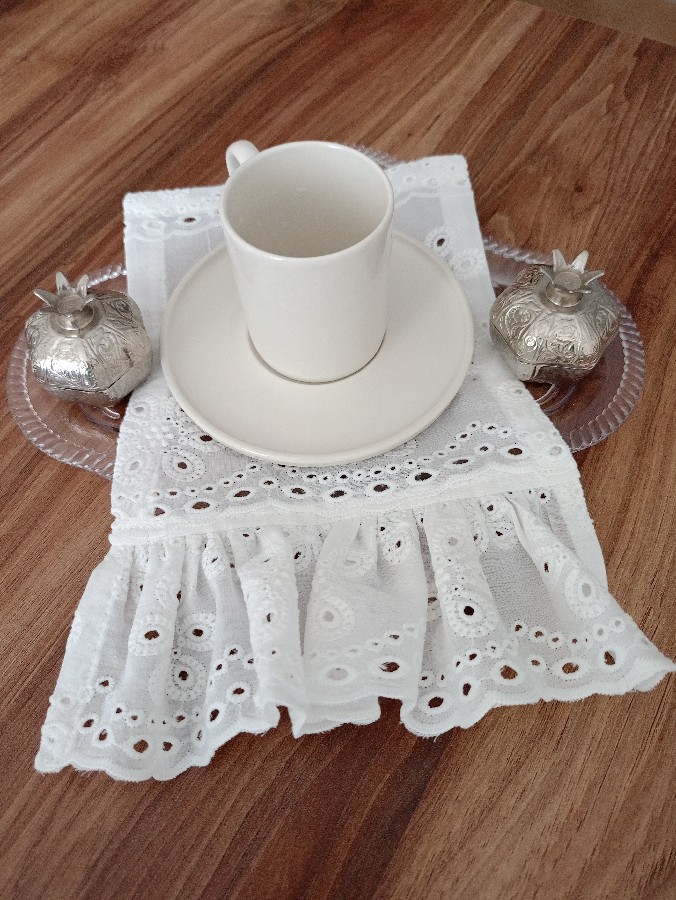 kahve sunumluğu şık kahve sunumlarınızın eşlikçisi ikili olarak satıştadır fisto kumaştan dikilmiştir 20-25 ölçüsündedir