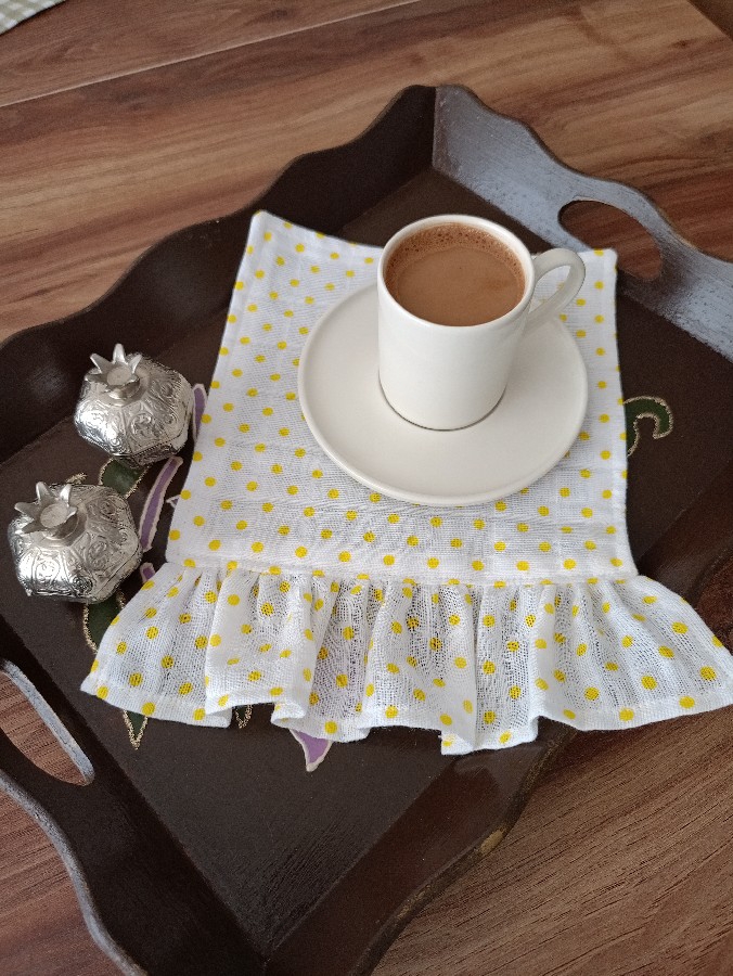 kahve sunumluğu ikili olarak satıştadır 20-25 ölçüsündedir müslin kumaştan dikilmiştir