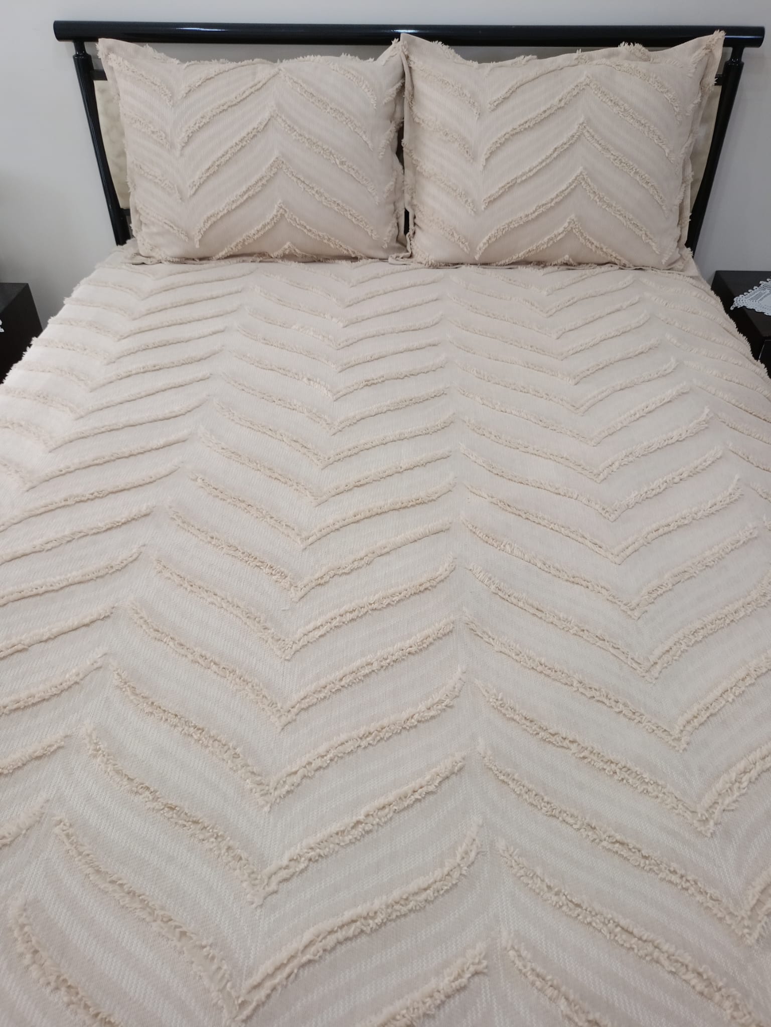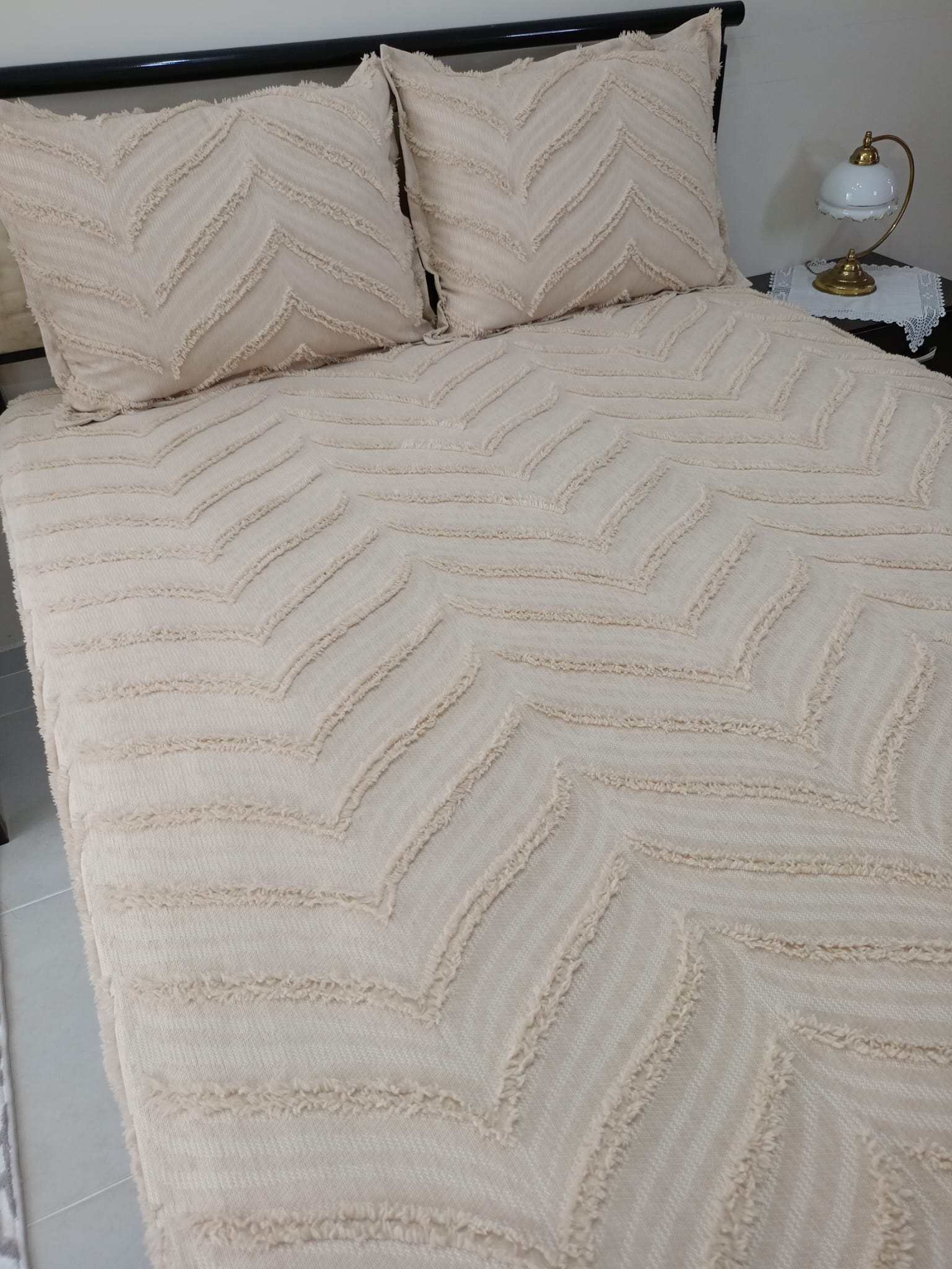 Limi Yatak Örtüsü, kaliteli ve şık tasarımıyla yatağınızın görünümünü tamamen değiştirecek bir üründür. Yatak odanızın dekorasyonuna uyum sağlayacak cappuccino ve krem renk seçeniğiyle sizlere sunulmaktadır. Ürün, yastık ve nevresim takımınızın üzerine rahatlıkla serilebilecek ölçü ve boyutlara sahiptir. Yüksek kaliteli kumaşı ve dayanıklı dokuması sayesinde uzun süre kullanım imkanı sunar. Limi Yatak Örtüsü, atölyemizde üretilmiş olup sağlığa ve çevreye uygun malzemeler kullanılarak üretilmiştir. Ürünün yıkanabilir olması sayesinde temizliği oldukça pratik ve kolaydır. Ütü gerektirmeyen kumaşı ile zaman kazandırır ve pratik kullanım sağlar. Limi Yatak Örtüsü'nün en büyük avantajı ise çekme ve solma yapmamasıdır. Yıllar boyunca ilk günkü gibi canlı ve parlak renklerini koruyarak yatağınızın şıklığını ve temizliğini korur. Ürünün kullanımı oldukça basittir, yatağınızı düz bir zemine sererek üzerine yayın ve isterseniz yastıklarınızı da aynı örtü ile birleştirerek tam bir uyum sağlayabilirsiniz. Hem yatağınızın görünümünü şık bir şekilde tamamlar hem de yastıklarınızın kaymasını önler. Limi Yatak Örtüsü, evinizin rahat ve modern bir dekorasyona sahip odalarında yatağınızın imajını tamamlar. Siz de yatak odanıza yeni bir soluk katmak istiyorsanız Limi Yatak Örtüsü'nü tercih edebilirsiniz. Unutmayın, Limi Yatak Örtüsü kalitesiyle yatağınıza daha temiz, daha şık ve daha konforlu bir görünüm kazandırır. Siz de bu ürünü hemen satın alarak daha önce hiç olmadığı kadar keyifli bir uyku deneyimi yaşayabilirsiniz. Ölçüler: 60*80 cm volanlı kırlent 250*255 cm yatak örtüsü 160*200 cm yatağa uyumlu lastikli çarşaf istenirse iki uyku yastığı ilave edilebilir